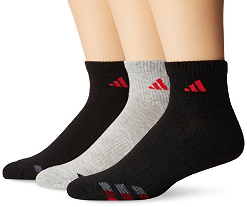adidas Men's Cushioned Quarter Socks (3 Pack), Black/Heather Grey/Ray Red/Collegiate Burgundy/Onix, Large fits shoe size 6-12