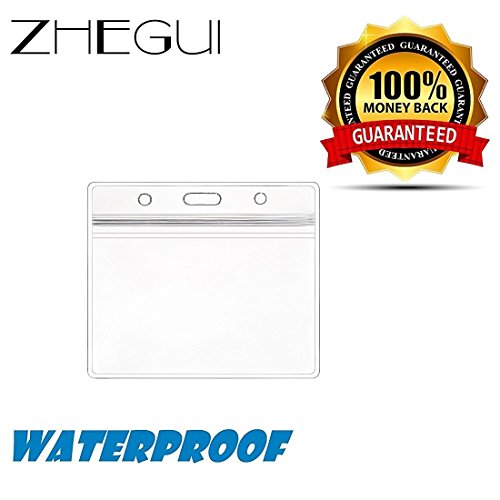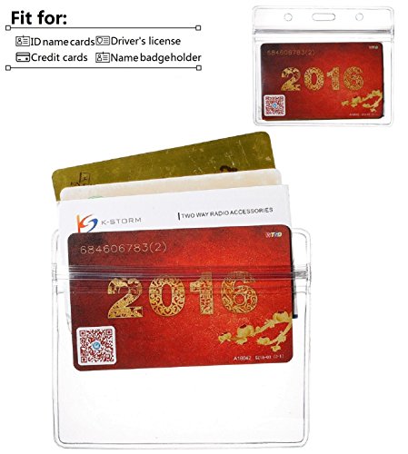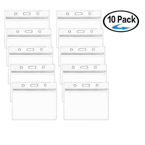 Horizontal Clear ID Badge Holder- Heavy Duty Card Holder with Resealable Zip For Multiple Cards- 10 Pack by ZHEGUI
