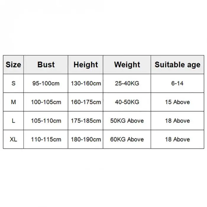 XL: Suitable Bust: 110cm - 115cm/43.31" - 45.28", Suitable Height: 180cm - 190cm/72.83" - 74.80" (Approx.)