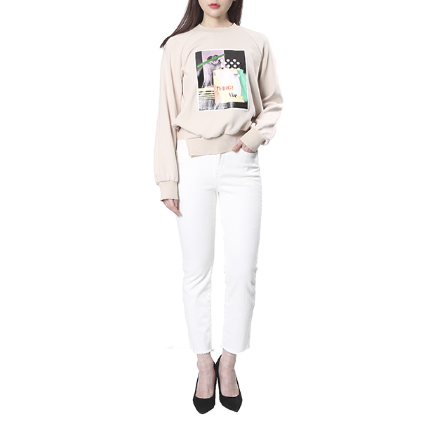 그래픽 디테일로 포인트를 준 티셔츠 입니다. 언발의 길이감과 슬릿 장식으로 트렌디함이 돋보이는 아이템 입니다.