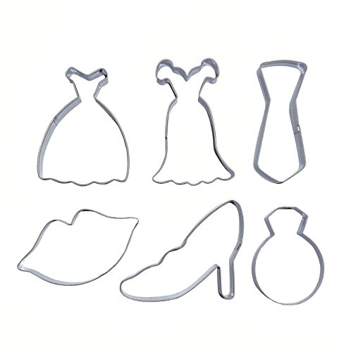 Wocuz Fashion Lady Dress Diamond Ring Necktie Shoes Lip Cookie Cutter Stainless Steel Fondant Cutter 6 Pcs