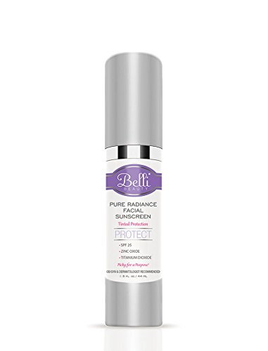 Belli Pure Radiance Facial Sunscreen SPF 25 protects against both UVA and UVB sunrays with physical barrier sunscreens, zinc oxide and titanium dioxide. Tinted to blend in with most skin tones and ideal for all skin types; oily, normal, dry, combination, and sensitive. All ingredients in Belli products are selected based upon extensive reviews of published medical studies. Our products are OB/GYN and Dermatologist recommended, allergy tested, and free of artificial dyes, fragrances, phthalates, and paraben preservatives. At Belli, we follow a unique safety screening process to avoid ingredients with known links to birth defects, miscarriages, and harmful effects while breastfeeding. All of our products are gluten-free and are not tested on animals. Made in the USA. Upgrade your skincare routine for beautiful skin and peace of mind today!Feature