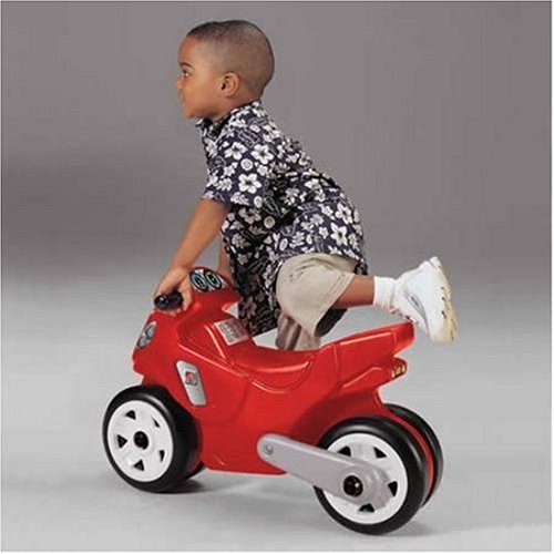 - Feature : Wide wheels for easy balance / Racer-like styling / Realistic headlights, taillights, and air intake decals / Easy-grip handles help with steering
