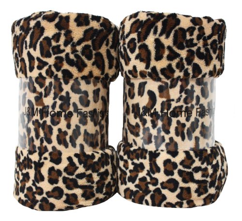 J & M Home Fashions Cheetah Plush Fleece Throw Blanket, 50 by 60-Inch, 2-Pack