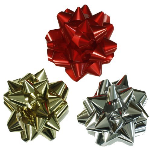 - Feature : Red Bow / Size: Jumbo (13 inch diameter) / Sold Individually / Bow has smooth red metllaic plastic finish and self-adhesive sticker on bottom, easily sticks to gift wrap, gift bags, or gift boxes / These bows make the perfect finishing touch to any gift, for birthdays, the holidays, weddings, baby showers or any other gift giving occasion