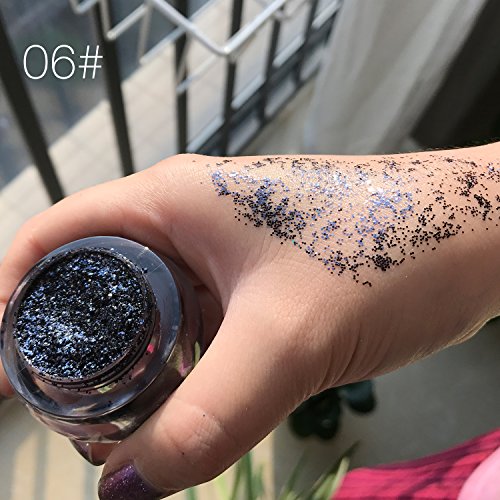 -. Feature : A versatile glitter makeup with a lot of sparkles for your face and body / Ultra sparkling glitter gel makeup comes in 6 amazing shades, from radiant reds to dazzling gold, you can mix them toghter or individual use / Formulated with long-lasting factor, minimize glitter fallout and keep each and every sparkle in its place, keep your sparkles stay on for whole day / The gel applies on smoothly and isn't sticky or greasy as all, dry fairly quickly, you can keep it thick or spread it out for a more diffused affect / Easy to remove with water
