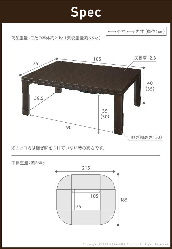 ●天板サイズ:幅105x奥行75cm・厚み23mm・約6.5kg
