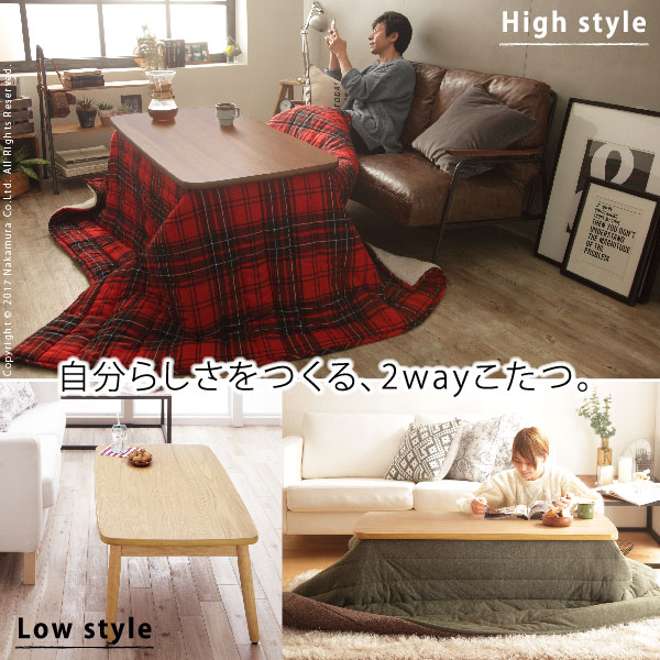 ●こたつ テーブル 2way ソファ 継ぎ脚 高さ調節 木製 おしゃれ 北欧 120