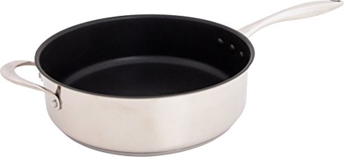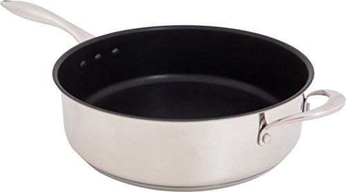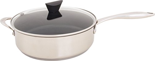 Featuring ETERNA -- a safe and durable non-stick coating developed in the USA, the Stainless Steel Earth Pan by Ozeri is the world’s first stainless steel frying pan to achieve non-stick perfection without using PFOA or APEO -- harmful chemicals often found in traditional cookware. Conventional sauce pans achieve their non-stick performance with the aid of PFOA (PerFluoroOctanoic Acid), which the EPA has classified as a 'persistent pollutant of the environment' and APEO (Alkylphenol ethoxylates), which are under restricted use in Germany due to environmental concerns. According to the EPA, once ingested, PFOA is capable of remaining in people for a very long time, and has been shown to cause developmental and other adverse effects in laboratory animals. Likewise, European studies have shown that APEO may be toxic to aquatic life, and has the potential to act as endocrine disrupters. With the Stainless Steel Earth Sauce Pan's ETERNA coating, even under high temperatures, no such controversial chemicals are ever passed on to you, or released into the environment. This is because the Stainless Steel Earth Sauce Pan utilizes a safer non-stick coating that is completely free of PFOA, and far more durable and scratch-resistant than other non-stick surfaces. With better non-stick properties, the Stainless Steel Earth Sauce Pan consistently renders cleaning a breeze. The Stainless Steel Earth Sauce Pan by Ozeri is made of the highest quality 18/8 stainless steel with TriPly construction, delivering the ultimate in heat conductivity. It boasts a magnetized bottom for rapid heat transfer on induction stoves, and a heat-resistant handle and side helper handle for safe and comfortable handling. The Stainless Steel All-In-One Sauce Pan is elegantly finished in a polished mirror exterior, and includes a tempered glass lid with a steam-release vent and heat-resistant knob. Your satisfaction is guaranteed. ETERNA coating made by Whitford USA. Sauce pan assembled in ChinaFeature