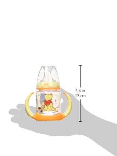 -. Binding : Baby Product -. Brand : Disney -. Feature : Helps make the transition from bottle to cup easier / Spill-proof, soft spout is designed to be gentle on gums while teaching baby to drink from a spout / Air vent helps reduce swallowing air / Easy-grip, anti-slip handles are easy for baby to hold and removable as baby ages / Flows easily when sipped; Designed for ages 6-months and up -. Label : Disney -. Manufacturer : Disney -. ProductGroup : Baby Product -. ProductTypeName : BABY_PRODUCT -. Publisher : Disney -. Studio : Disney -. Title : NUK Disney Winnie The Pooh Learner Cup with Silicone Spout, 5-Ounce