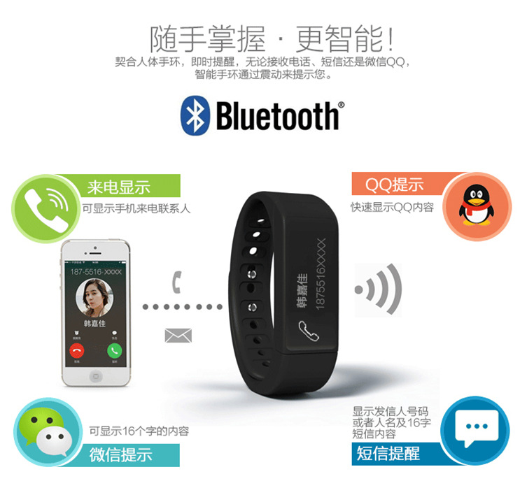 Smart bracelet sports bracelet caller names displayed message reminding health bracelet