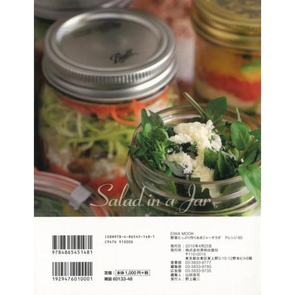 【商品説明】 定価(税込み):1,080円 値引き:10% OFF ガラス瓶に、穀物や硬い野菜・葉物野菜を重ねるだけのジャーサラダ。見た目が美しく、野菜のシャキシャキ感が生きるレシピを80掲載。 バーゲンブック 新品 特価 格安 クッキング 家庭 料理 レシピ |