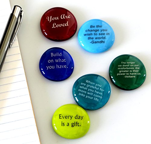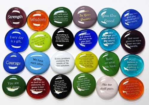 Encouragement Stones, Set of 24 Motivational and Inspirational Quotes and Sayings on Translucent and Opaque Glass Stones, by Lifeforce Glass.