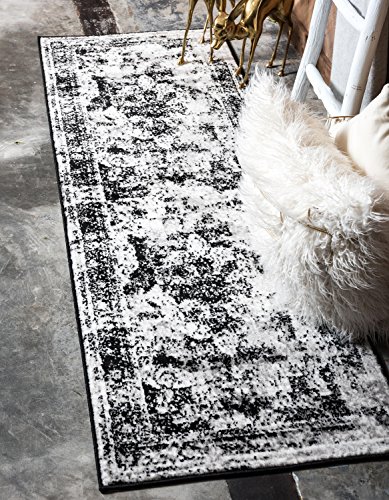 Studio : Unique Loom Publisher : Unique Loom Binding : Kitchen Product Description This Turkish Sofia rug is made of polypropylene. This rug is easy-to-clean, stain resistant, and does not shed. Colors found in this rug include: Black, gray, ivory. The Primary color is Black. This rug is 1/3" thick. 0