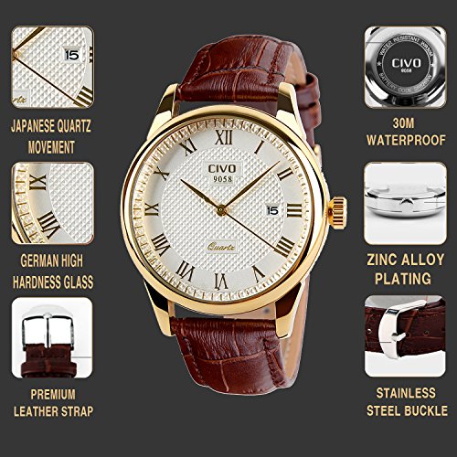 PURCHASE WITHOUT WORRY: Each CIVO watch comes with a 12-month warranty and 90-day 100% money back full refund guarantee. If you have any dissatisfaction, please email to our after-sale team, we will refund 100% of your money back, no question asked! Click the Add to Cart button now to ensure you receive the best men's leather band casual business watch on Amazon