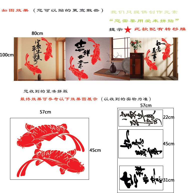 Material: environmental protection PVC, with a transfer film Dimensions: see below Sizes compact layout size and good dimensional collage of your income, we are for reference only, you can combine the actual size of the free area