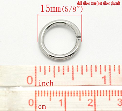 VALYRIA 100pcs Silver Tone Stainless Steel 2mm Open Jump Rings Connectors Jewelry Findings (15mm(5/8"))