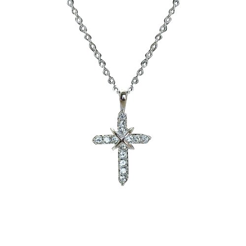 -. Title : 18K Crystal Pave Cross Pendant Necklace - Rose Gold / White Gold Plated