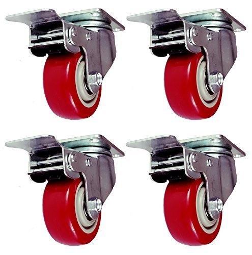 Online Best Service 4 Pack Caster Wheels Swivel Plate Stem Brake Casters On Red Polyurethane Wheels 880 Lbs (3 inch with brake)