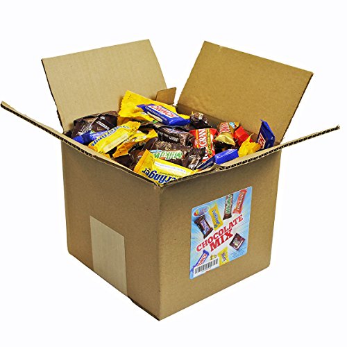 -. Feature : A great assortment of all your chocolate bars including M&Ms, M&M Peanut, Milky Way, Snickers, Twix, 100 Grand, Butterfinger, Nestle Crunch, and Skittles / Perfect for a party, goody bags or Holiday, this variety pack gives you all of your favorite chocolate in one easy purchase. / A HUGE assortment of candies for any occasion. Buy in bulk to save money. Item box size is 8" x 8" x 8" and contains approximately 5 lbs. / Great for Halloween trick or treat, Christmas, parties, carnivals, pinatas, or any occasion for sugary treats. Great candy that will be loved by kids of all ages (and adults too). Enjoy these sweet treats with many enticing flavors of the classic candy you crave. / Individually wrapped. Items are repackaged in a facility that may contain milk, soy, peanuts, tree nuts, eggs, wheat and all other allergens.