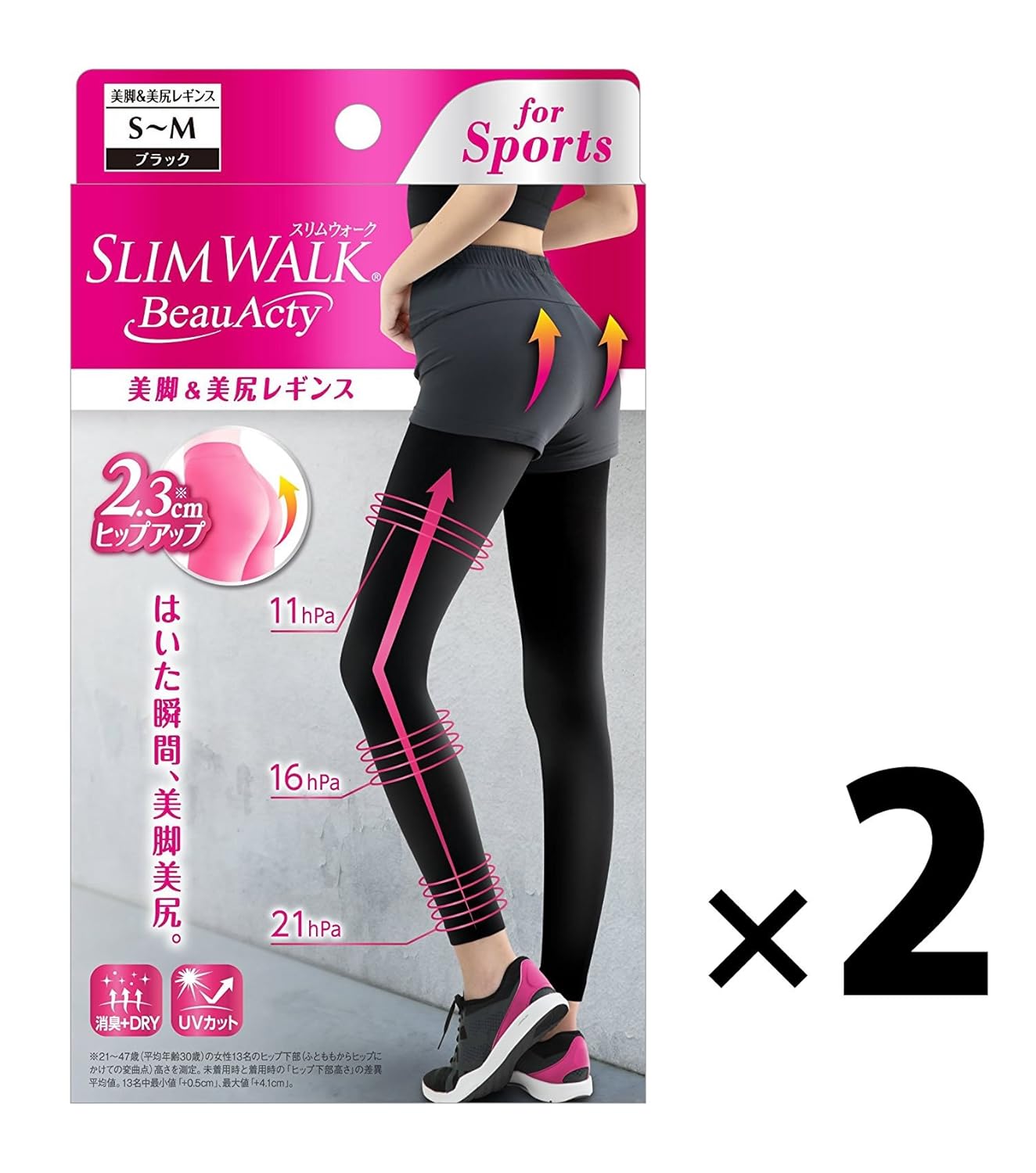 【2点セット】 ピップ スリムウォーク ビューティアクティ 美脚&美尻レギンス S~M
