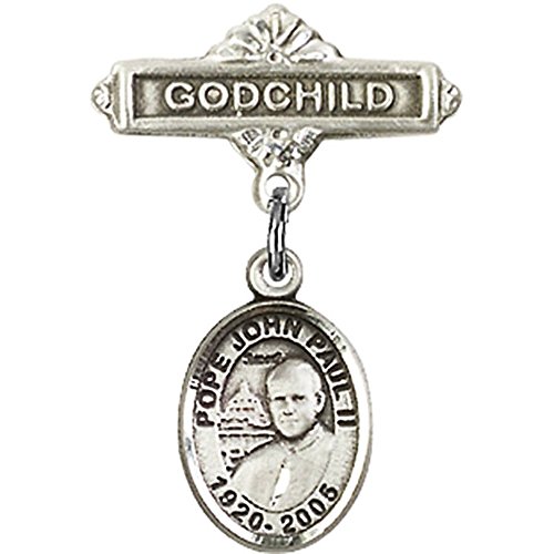 -. Title : Sterling Silver Baby Badge with St. John Paul II Charm and Godchild Badge Pin 1 X 5/8 inches