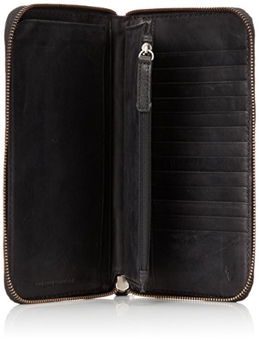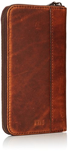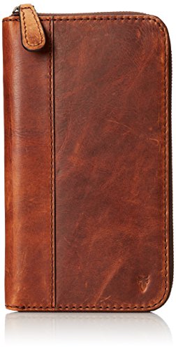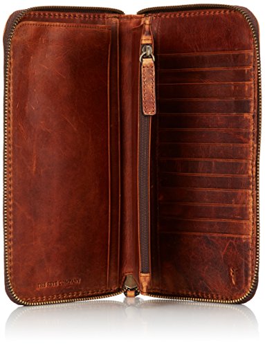 -. Feature : Vintage leather organized travel wallet with reinforced binding and debossed front logo / Interior zipper pocket flap