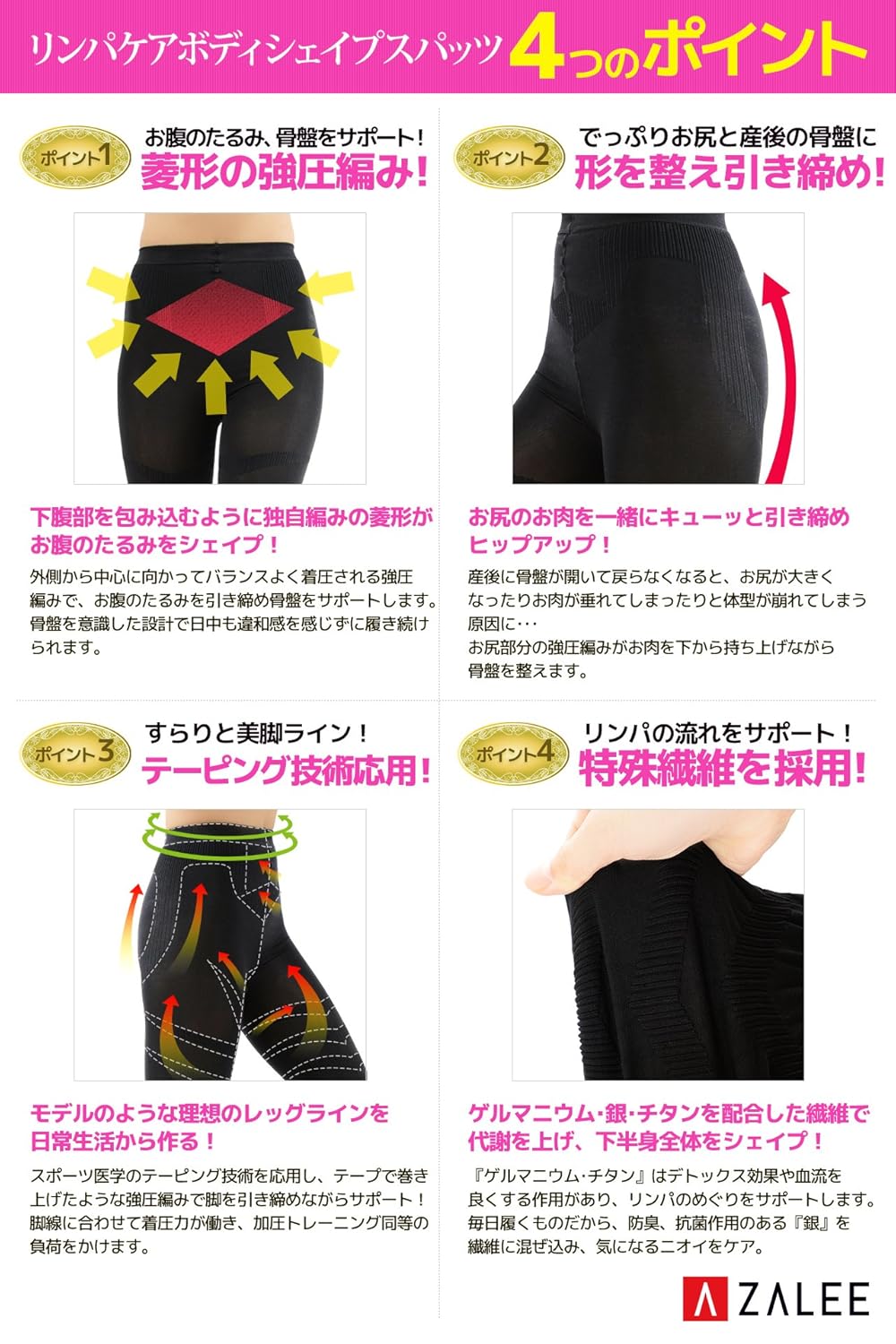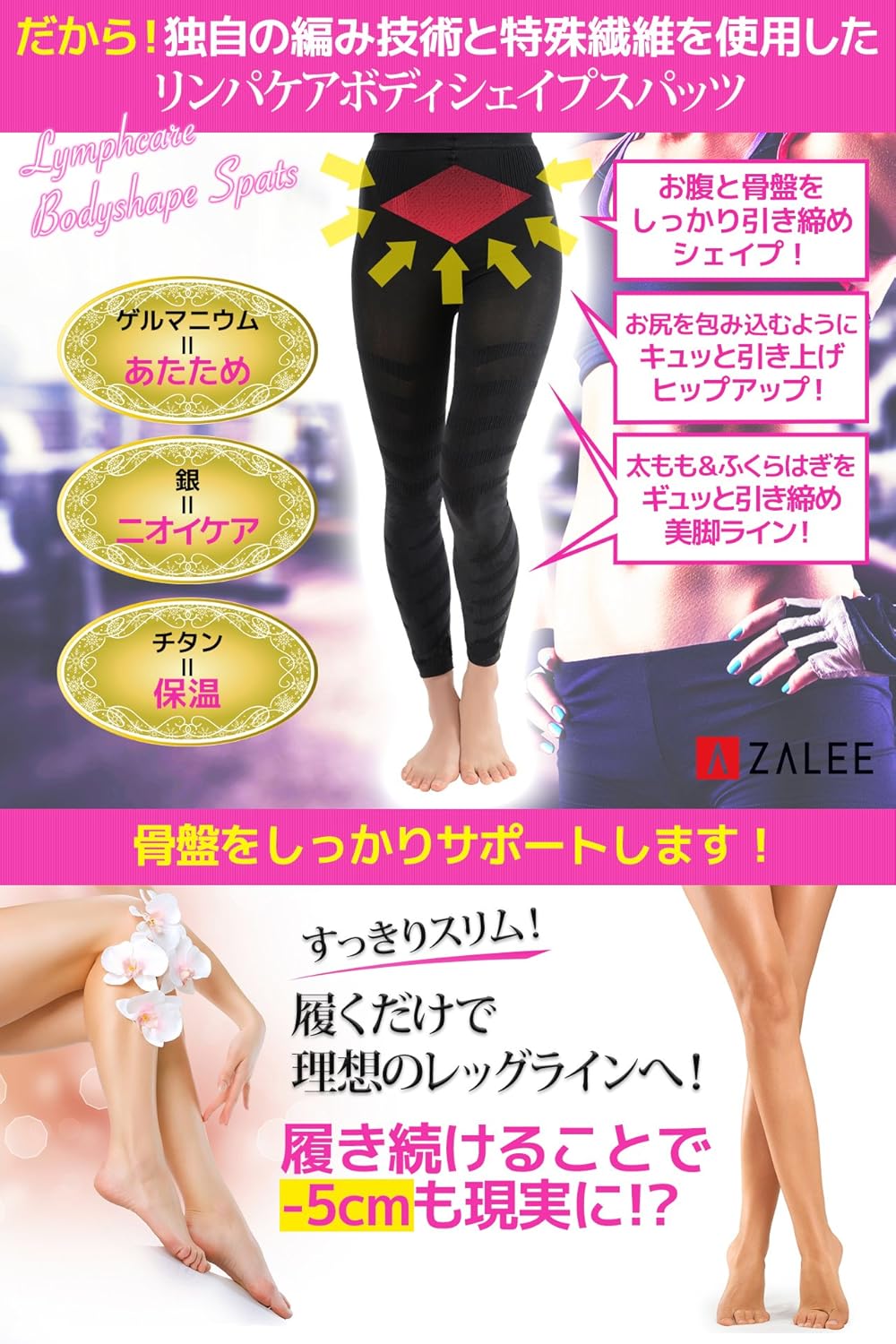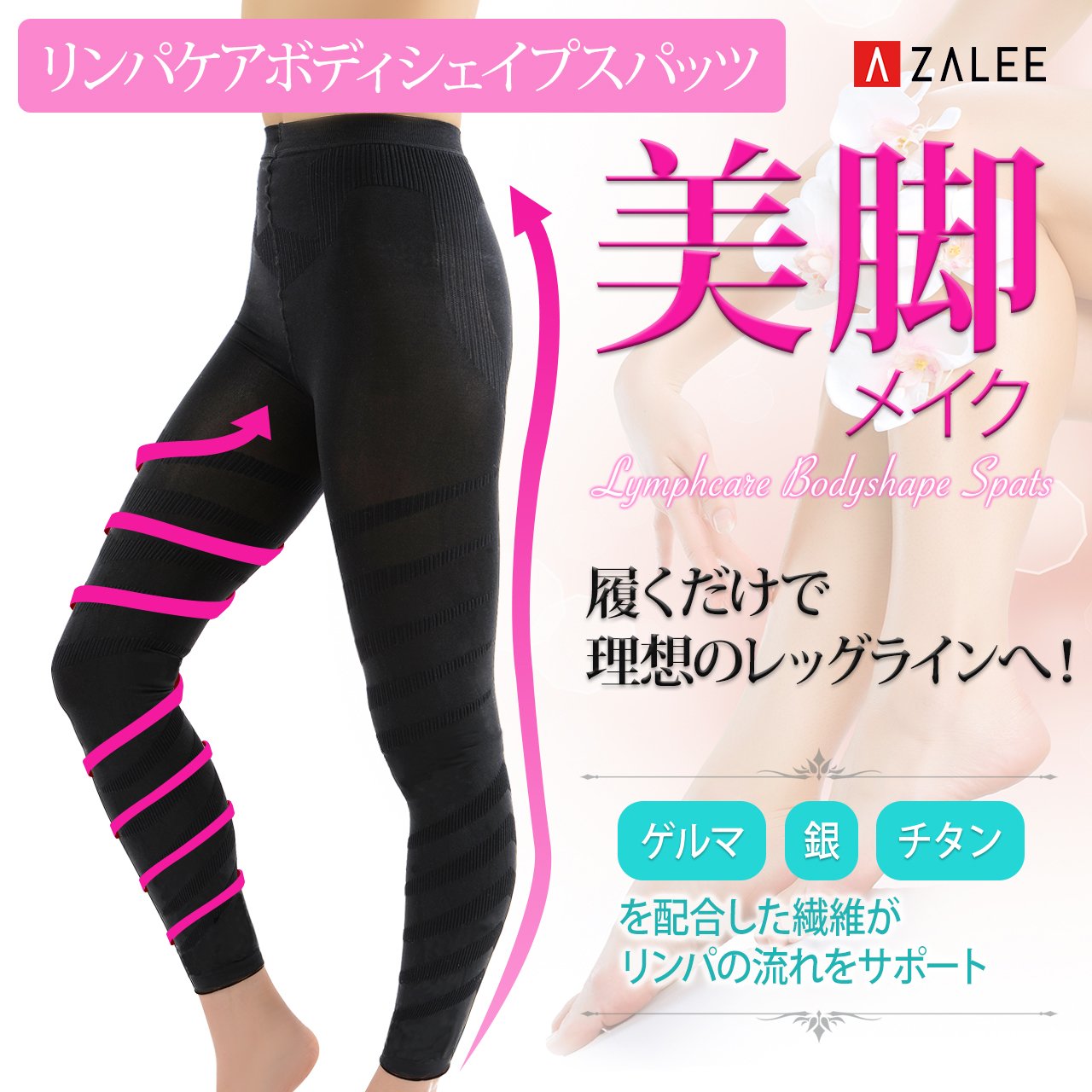 リンパケアボディシェイプスパッツを履くだけでリンパの流れをサポートし、むくみを改善。着圧レギンスでリンパケア。