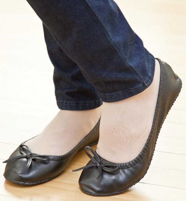 コンパクトに折りたため、携帯ポーチ付きなので手軽に携帯できます。飛行機での移動時や室内履きにも。
