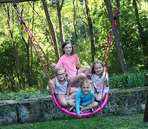 Web Riderz Tickled Pink Outdoor Swing N' Spin- Safety rated to 600 lb, Adjustable length hanging ropes, Ready to hang, Easy Install, 39 Inch Diameter