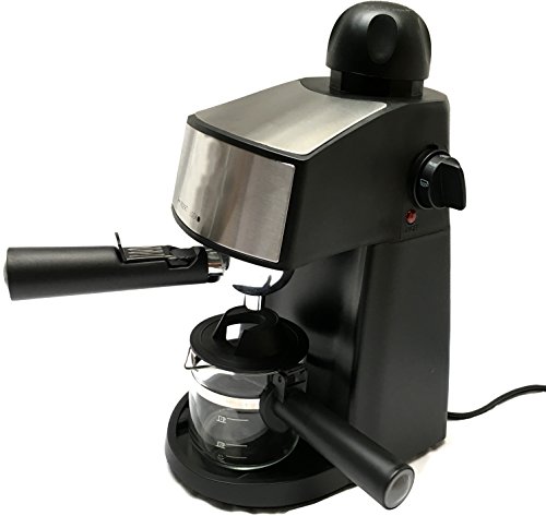 Powerful steamer to make rich cappuccinos and lattes european style with 800 watts of power;Brews up to 20 oz. of espresso coffee / Glass decanter with Cool-Touch handle;Removable Drip Tray and nozzle for easy cleaning;Measuring scoop included;comes with one year warranty