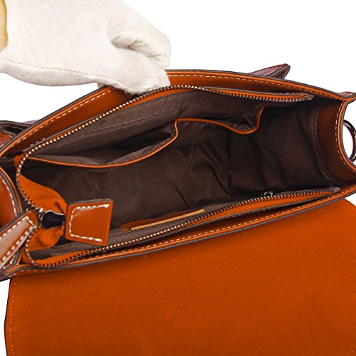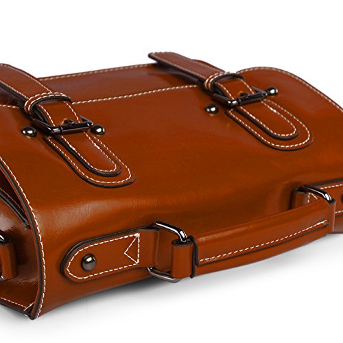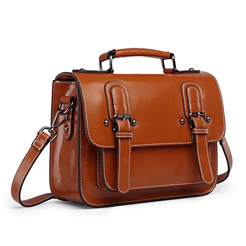 -. Brand : Damero -. Department : womens -. Feature : Material: soft genuine leather, high quality metal hardware and fabric. Great for school, travel, office, shopping / Closure: Magnet button and zipper switch. Style:Top handle messenger briefcase bag & genuine leather satchel bag / Approximate Size: L11.2"*H8.7"*W3.54", Weight: about 0.7kg (1.55 pounds). Adjustable and removable shoulder strap L47", reinforce top handle / The fabric-lined interior of this satchel is spacious and outfitted with 2 slip pockets, 1 zippered pockets. 1 exterior easily-accessible zipper back pocket / Please note that this genuine leather satchel doesn't fit A4 paper, but can fit iPad 2,3,4,air and other 10-inch touchpad -. PackageQuantity : 1 -. ProductGroup : Shoes -. ProductTypeName : HANDBAG -. Title : Damero Retro Genuine Leather Messenger Bag Women Crossbody Satchel Bag Briefcase
