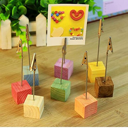 NUOLUX 8pcs Pine Base Photo Holder Stand Card Note Desk Memo Clip (Random Color)