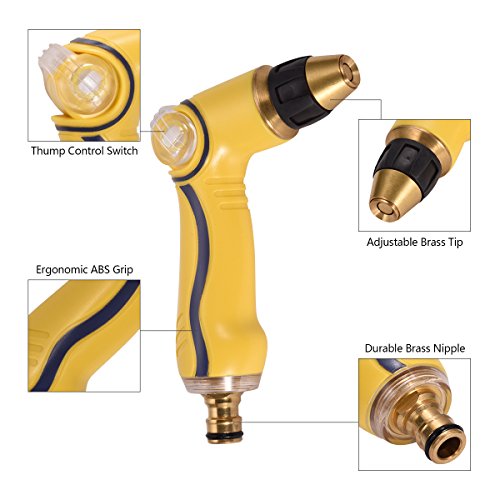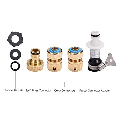 e-HOME 50ft Garden Hose with Brass Fittings - Quick Connect Sets and 3/4” Connector, High Pressure Spray Nozzle - Adjustable Watering Pattern, Free Gifts - Faucet Adapter and Extra Rubber Washers