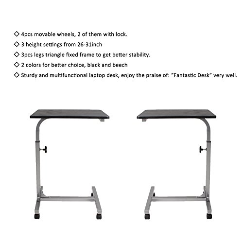 ROLLING OVERBED LAPTOP DESK CART: 4 wheels, 2 of them is lockable. fashionable and convenient;