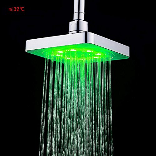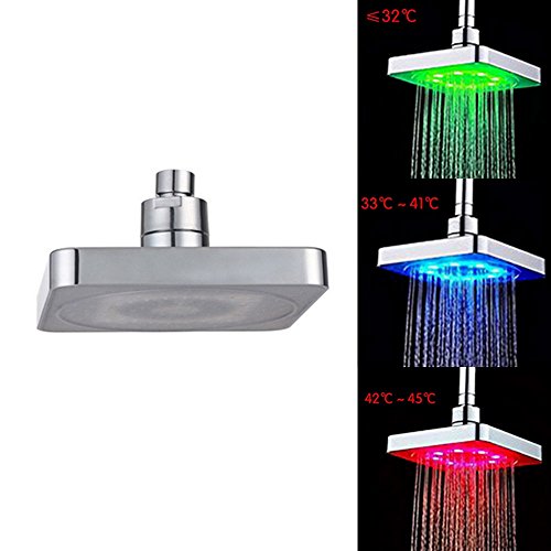 No batteries, no wire needed. Color changes according to the temperature of the water running. Brightness is such enough even no other lighting fixtures need.