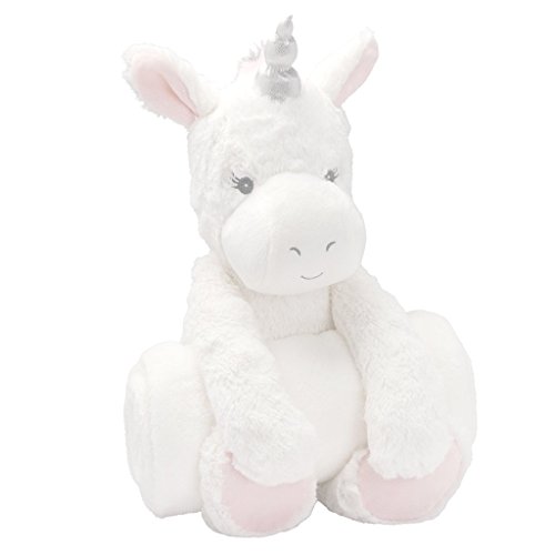 -. Feature : Plush animal holding 30" x 38" blanket / Perfect for playing and sleeping / Plush animal, damp wipe only, air dry only / Blanket, machine wash cold, tumble dry low / Blanket can be personalized with name or initials