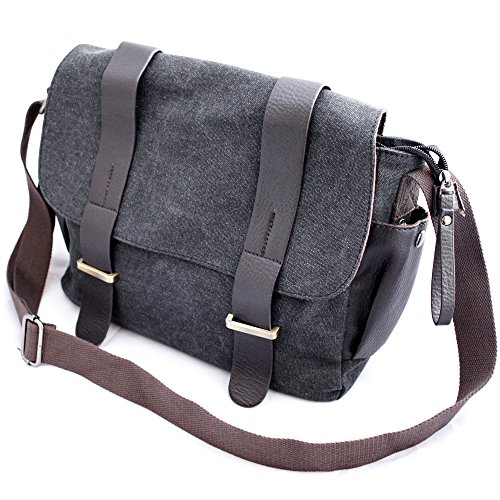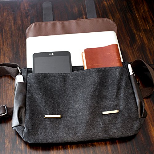 -. Binding : Electronics -. Brand : b.still -. Color : Grey Denim and Chocolate Brown Straps -. EAN : 0646437706780 -. Feature : Canvas satchel features luxury denim, stunning brass hardware, and a sturdy crossbody strap, making this the perfect school or business sidekick / Padded laptop sleeve along with strong velcro straps will fit 13 inch notebook, ensuring they remain safe and protected at all times / Exterior snap pockets on either side provide convenient storage for cell phone, book, keys, or wallet / Features 9 pockets for all your accessories so they remain in their place at all times / Order Today and make a statement with our fashion bags! Feel confident with our 60 day satisfaction guarantee. Approx Dimensions 15.6" L x 10" H x 4.5" W -. Label : b.still -. Manufacturer : b.still -. Model : BC34683 -. MPN : BC34683 -. PartNumber : BC34683 -. ProductGroup : Personal Computer -. ProductTypeName : CARRYING_CASE_OR_BAG -. Publisher : b.still -. Studio : b.still -. Title : b.still Messenger Bag with Laptop Sleeve for Men and Women | Gray -. UPC : 646437706780