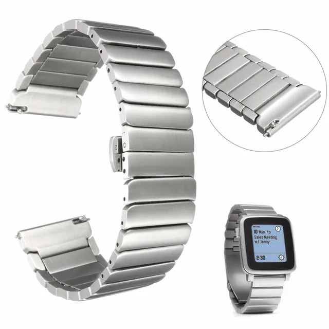 | [해외] 22 미리메터 166 미리메터 브랜드 새로운 조약돌 시간 스틸 스트랩 스테인레스 스틸 손목 시계 밴드 손목 손목 팔찌 butterfly 걸쇠 |