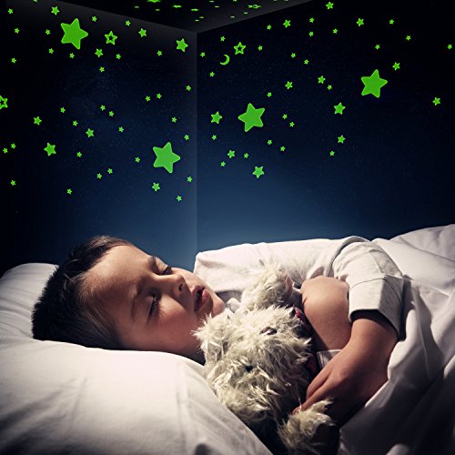 ✭GET YOUR KIDS TO SLEEP FASTER AND DON'T BE AFRAID OF THE DARK ANYMORE:Studies show that the soothing light emitted from glow in the dark stars helps comfort children and even adults to help them fall asleep.Add those fluorescent ceiling stars to kid's bedroom which can help make your baby's nursery even more calming.
