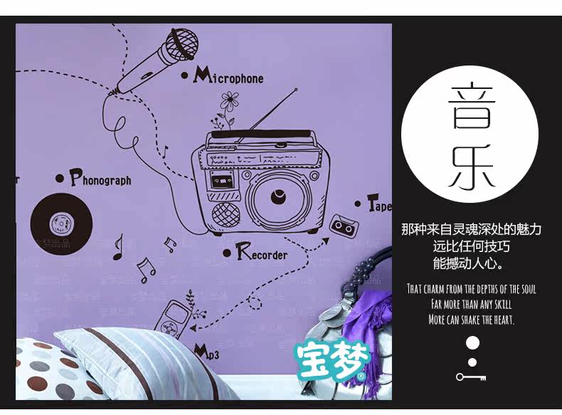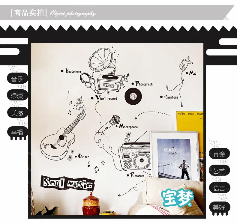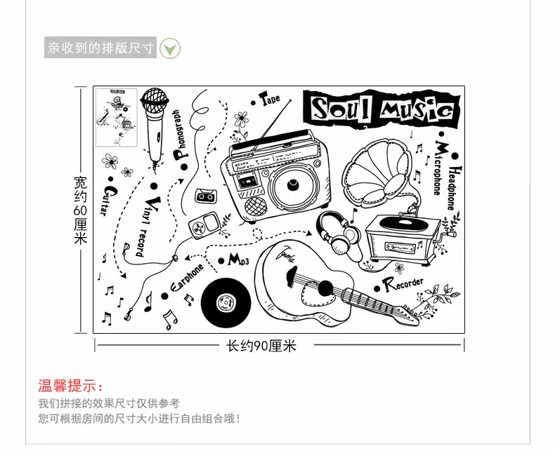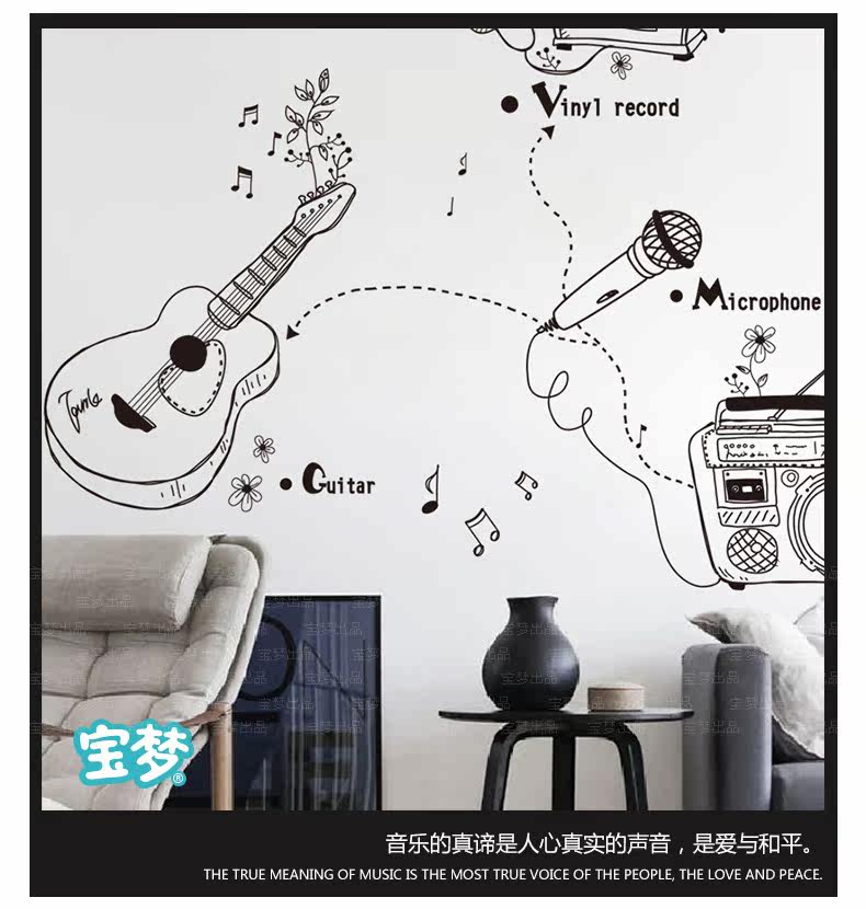 创意乐器墙贴纸装饰品教室吉他培训个性酒吧ktv店铺橱窗玻璃贴画