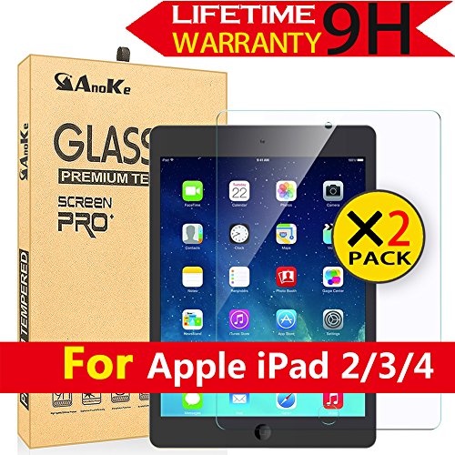 iPad 2 / iPad 3 / iPad 4 Glass Screen Protector,[2 Pack] AnoKe [Case Friendly](0.3mm 9H) Clear Tempered Film Shield Guard For Apple iPad 2/3/4 Glass - 2 Pack