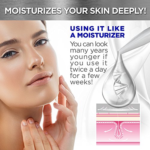 MOISTURIZES YOUR SKIN DEEPLY! Hyaluronic acid makes your skin smoother and softer, just by using it like a moisturizer. You can look many years younger if you use it twice a day for a few weeks!