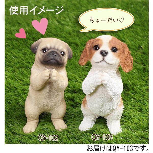 | うるうるの瞳でおねだりする姿が可愛い、子犬のキャバリアのオブジェです。リビングや玄関先、屋外のインテリアにぴったり♪きれいな仕上げで、まるで生きているかのような、愛らしい仕草や表情が特徴です。 |