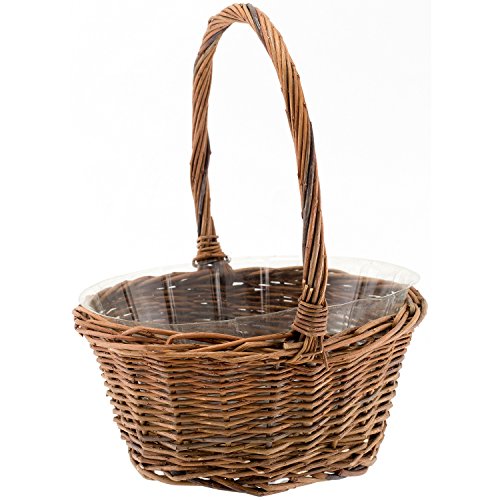 Oval Shaped -SMALL- Willow Handwoven Easter Basket by Royal Imports 9"(L) x7"(W) x3.5"(H) (10.5"(H) w/ handle) braided rim - with Plastic Insert