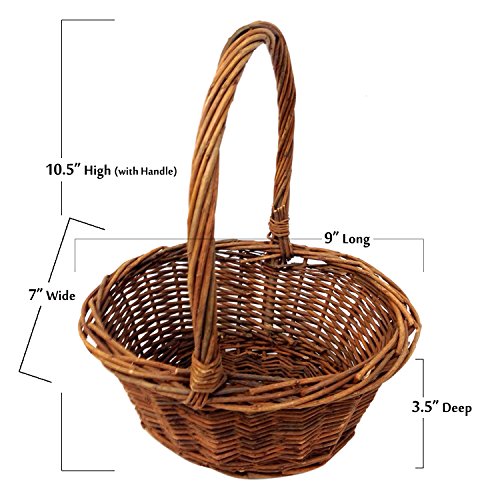 MADE OF HIGH QUALITY- This oval basket is professionally made with the highest quality by Royal Imports. Features a natural finish and is handwoven from willow with braided rim. The opening of the basket measures 9x7 Inches and it stands 10.5 inches tall with the handle (basket itself is 3.5" deep) included.