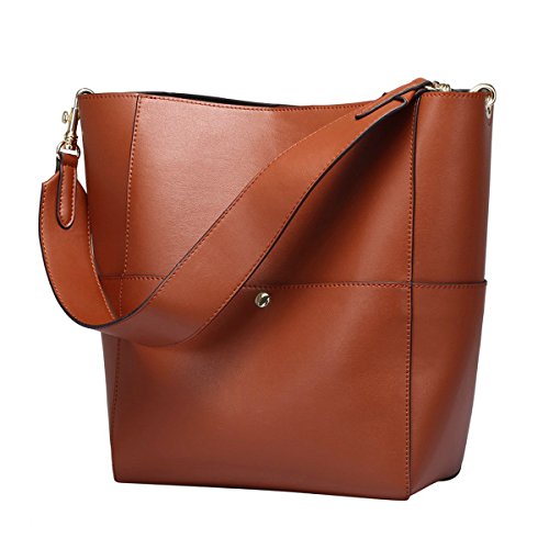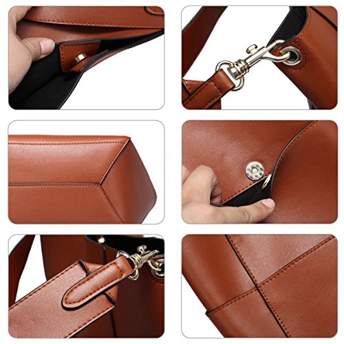 Women Vintage Leather Tote Shoulder Bag with Removable Inner Pouch