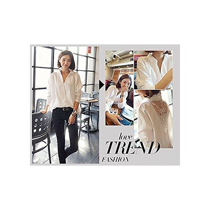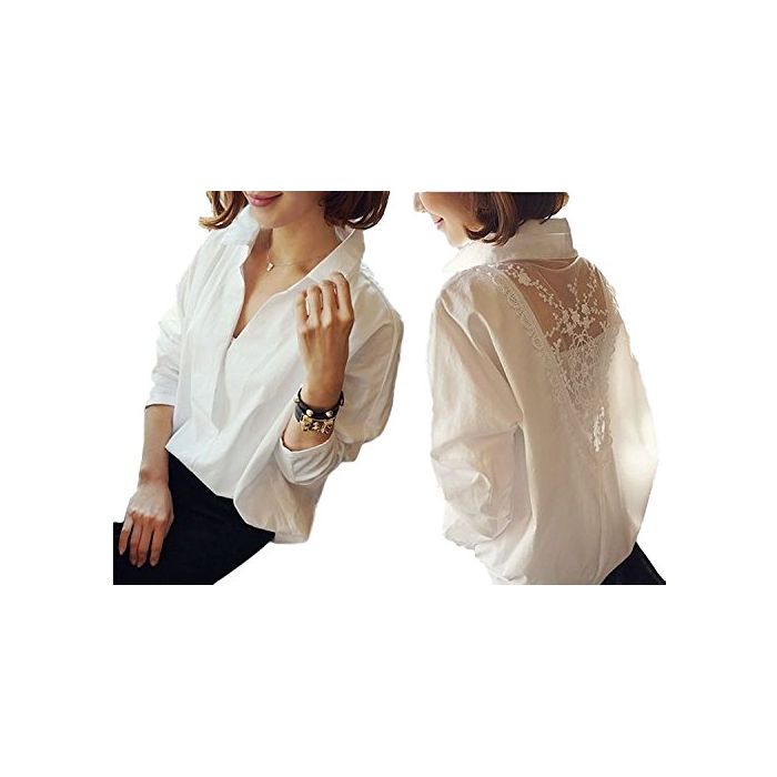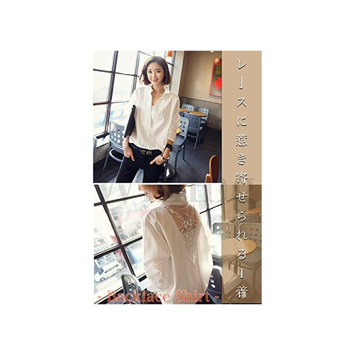 (《우린구》) Willing 레이디스 긴 소매 블라우스 백 레이스 시 스루(see through) 섹시 (S.)