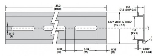 NTE Electronics R95-125 Aluminum Prepunched DIN Rail, 39.37" Length