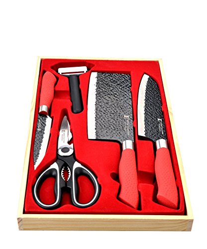 Imperial Collection IM-KPW1 RED 6 Piece Knife Set, Includes 2-in-1 Scissor/Bottle Cap Opener, Peeler and Storage Case - Coating Kitchen Knives (Red)